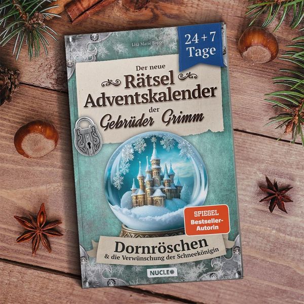 In diesem besonderen Adventskalender begibst Du Dich auf ein magisches Abenteuer im Reich von Dornröschen. Entschlüssle alleine oder gemeinsam mit Deiner Familie oder Freunden rätselhafte Botschaften und bringe Licht in die verborgenen Mysterien, die die Schneekönigin umgeben.