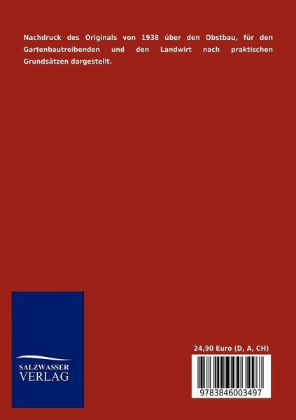 Nachdruck des Originals von 1938 über den Obstbau, für den Gartenbautreibenden und den Landwirt nach praktischen Grundsätzen dargestellt.