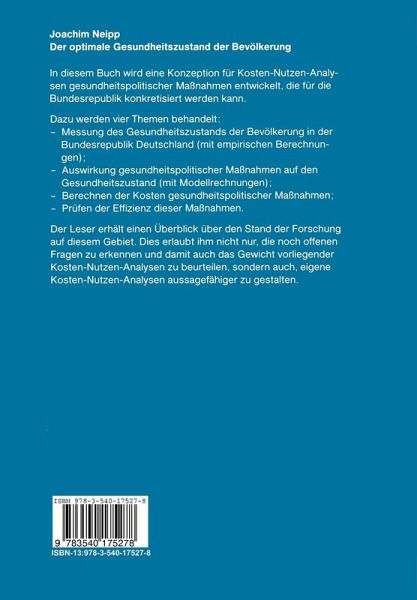 Die Gesundheitspolitik in der Bundesrepublik Deutschland wird insbesondere in den letzten 10 Jahren von dem Dilemma geprägt, einerseits den Anstieg der Aus gaben im Gesundheitswesen zu dämpfen und andererseits den medizinischen Fort schritt in Maßnahmen zur Verbesserung des Gesundheitszustandes der Bevölke rung umzusetzen. Für die Lösung dieses Dilemmas kommt der Frage, bis zu wel cher Kostenhöhe solche Maßnahmen durchgeführt werden sollten, eine zentrale Rolle zu. Sie steht daher auch im Mittelpunkt einer nahezu verwirrenden Fülle wissenschaftlicher Publikationen, die auf verschiedenen Konzeptionen beruhen und zu unterschiedlichen Ergebnissen kommen. Ein weiteres Charakteristikum dieser Veröffentlichungen ist, daß meist nur Teillösungen erarbeitet werden. Diese Arbeit stellt den Versuch dar, aus den vorliegenden Ansätzen und Modellen zu Teilbereichen der oben dargestellten Frage eine in sich geschlossene Konzep tion für die Bewertung gesundheitspolitischer Maßnahmen zu entwerfen, die unter Berücksichtigung der spezifischen Gegebenheiten des Gesundheitswesens in der Bundesrepublik Deutschland operationalisiert werden kann. Ziel der Arbeit ist es also, die theoretische und vor allem die empirische Basis der gesundheitspoli tischen Entscheidungen zu erwei terno Der Grundstein der Arbeit wurde während meiner Tätigkeit als Assistent von Prof. Dr. Maria Blohmke am Institut für Sozial- und Arbeitsmedizin der Universi tät Heidelberg gelegt. In dieser Zeit konnte ich mich in die Gebiete der Sozialmedi zin und der Epidemiologie einarbeiten, die für die Zielsetzung der Arbeit eine we sentliche Bedeutung besitzen. Frau Prof. Dr. Maria Blohmke hat mich dabei als verständnisvolle und stets gesprächsbereite Mentorin nachhaltig gefördert.Dafür schulde ich ihr großen Dank.