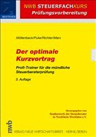 Bestandteil der mündlichen Steuerberaterprüfung ist ein Vortrag von zehnminütiger Dauer, der für den weiteren Prüfungsverlauf eine wichtige Rolle spielt. Demzufolge ist es wichtig, sich auf diesen Vortrag sehr gut vorzubereiten. Dieser Titel liefert dafür die notwendige Hilfestellung. Er enthält Hinweise zum Stellenwert, Ablauf, Inhalt der mündlichen Prüfung, Hinweise zur Vorbereitung auf den Kurzvortrag (Aufbau, Inhalt, Gliederung) sowie die Darstellung ausgewählter Kurzvorträge. Diese haben immer ein Thema aus folgenden Prüfungsgebieten zum Gegenstand:
