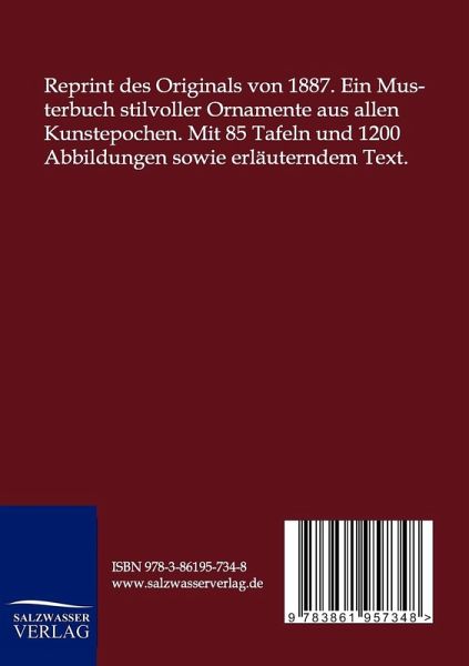 Reprint des Originals von 1887. Ein Musterbuch stilvoller Ornamente aus allen Kunstepochen. Mit 85 Tafeln und 1200 Abbildungen sowie erläuterndem Text.