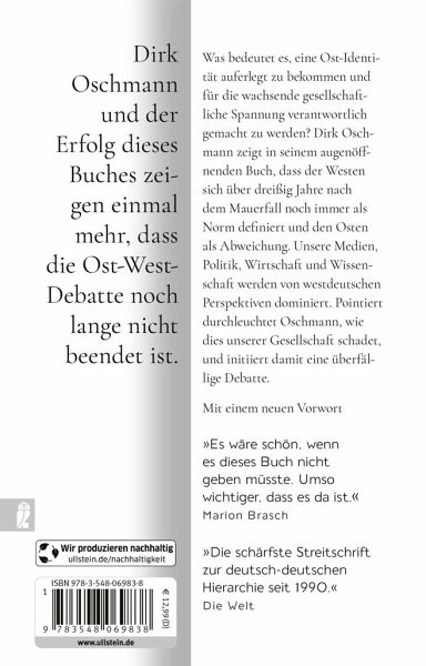 Was bedeutet es, eine Ost-Identität auferlegt zu bekommen? Eine Identität, die für die wachsende gesellschaftliche Spaltung verantwortlich gemacht wird? Der Attribute wie Populismus, mangelndes Demokratieverständnis, Rassismus, Verschwörungsmythen und Armut zugeschrieben werden? Dirk Oschmann zeigt in seinem augenöffnenden Buch, dass der Westen sich über dreißig Jahre nach dem Mauerfall noch immer als Norm definiert und den Osten als Abweichung. Unsere Medien, Politik, Wirtschaft und Wissenschaft werden von westdeutschen Perspektiven dominiert. Pointiert durchleuchtet Oschmann, wie dieses Othering unserer Gesellschaft schadet, und initiiert damit eine überfällige Debatte.