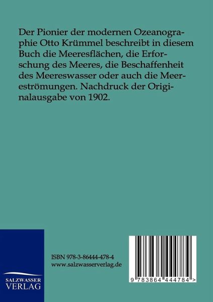 Der Pionier der modernen Ozeanographie Otto Krümmel beschreibt in diesem Buch die Meeresflächen, die Erforschung des Meeres, die Beschaffenheit des Meereswasser oder auch die Meereströmungen. Nachdruck der Originalausgabe von 1902.