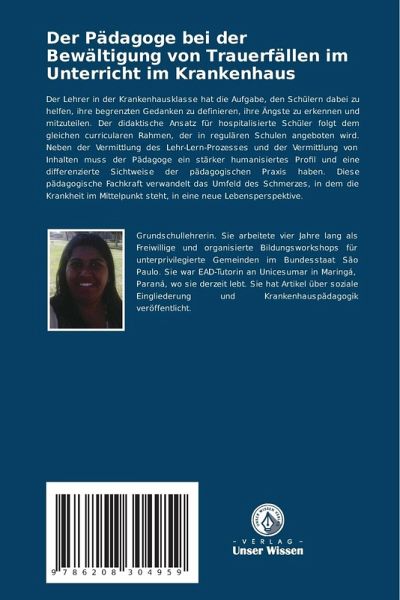 Der Lehrer in der Krankenhausklasse hat die Aufgabe, den Schülern dabei zu helfen, ihre begrenzten Gedanken zu definieren, ihre Ängste zu erkennen und mitzuteilen. Der didaktische Ansatz für hospitalisierte Schüler folgt dem gleichen curricularen Rahmen, der in regulären Schulen angeboten wird. Neben der Vermittlung des Lehr-Lern-Prozesses und der Vermittlung von Inhalten muss der Pädagoge ein stärker humanisiertes Profil und eine differenzierte Sichtweise der pädagogischen Praxis haben. Diese pädagogische Fachkraft verwandelt das Umfeld des Schmerzes, in dem die Krankheit im Mittelpunkt steht, in eine neue Lebensperspektive.
