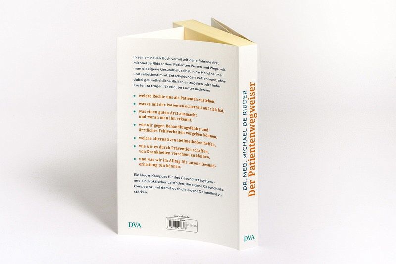 In seinem neuen Buch vermittelt der erfahrene Arzt Michael de Ridder dem Patienten Wissen und Wege, wie man die eigene Gesundheit selbst in die Hand nehmen und selbstbestimmt Entscheidungen treffen kann, ohne dabei gesundheitliche Risiken einzugehen oder hohe Kosten zu tragen. Er erläutert unter anderem: