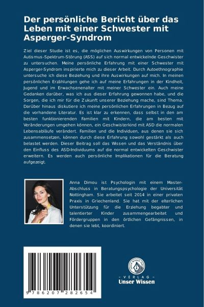 Ziel dieser Studie ist es, die möglichen Auswirkungen von Personen mit Autismus-Spektrum-Störung (ASS) auf sich normal entwickelnde Geschwister zu untersuchen. Meine persönliche Erfahrung mit einer Schwester mit Asperger-Syndrom inspirierte mich zu dieser Arbeit. Durch Autoethnographie untersuche ich diese Beziehung und ihre Auswirkungen auf mich. In meinen persönlichen Erzählungen gehe ich auf meine Erfahrungen in der Kindheit, Jugend und im Erwachsenenalter mit meiner Schwester ein. Auch meine Gedanken darüber, was ich aus dieser Erfahrung gewonnen habe, und die Sorgen, die ich mir für die Zukunft unserer Beziehung mache, sind Thema. Darüber hinaus diskutiere ich meine persönlichen Erfahrungen in Bezug auf die vorhandene Literatur. Es ist klar zu erkennen, dass selbst in den am besten funktionierenden Familien mit Kindern, die am besten mit Veränderungen umgehen können, ein Geschwisterkind mit ASD die normalen Lebensabläufe verändert. Familien und die Individuen, aus denen sie sich zusammensetzen, können durch diese Erfahrung sowohl gestärkt als auch belastet werden. Dieser Beitrag soll das Wissen und das Verständnis über den Einfluss des ASD-Individuums auf die normal entwickelten Geschwister erweitern. Es werden auch persönliche Implikationen für die Beratung aufgezeigt.