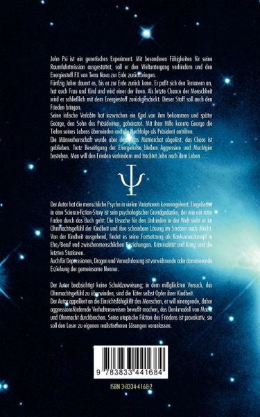Eingebettet in eine Science-fiction-Story ist sein psychologischer Grundgedanke; die Ursache für den Unfrieden in der Welt sieht er im Ohnmachtsgefühl der frühen Kindheit und ihre scheinbare Lösung im Streben nach Macht. Von der Kindheit ausgehend findet es seine Fortsetzung als Konkurrenzkampf in Ehe/Beruf und zwischenmenschlichen Beziehungen. Der Autor beabsichtigt keine Schuldzuweisung; in dem mißglückten Versuch,das Ohnmachtsgefühl zu überwinden sind die Täter selbst Opfer ihrer Kindheit. Er appelliert vielmehr an die Einsichtsfähigkeit des Menschen, er will einengende, daher aggressionsfördernde Verhaltensweisen bewußt machen,das Denkmodell von Macht und Ohnmacht durchbrechen. Seine utopische Fiktion des Friedens ist provokativ, sie soll den Leser zu eigenen realistischeren Lösungen veranlassen.