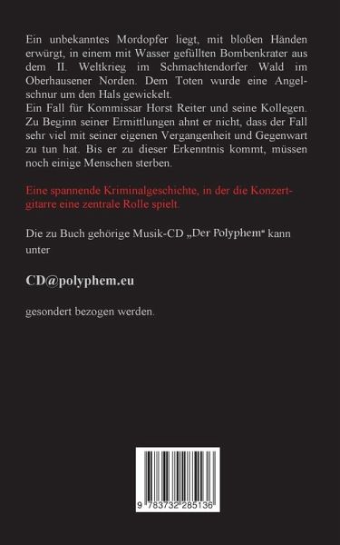 Ein unbekanntes Mordopfer liegt, mit bloßen Händen erwürgt, in einem mit Wasser gefüllten Bombenkrater aus dem II. Weltkrieg im Schmachtendorfer Wald im Oberhausener Norden. Dem Toten wurde eine Angelschnur um den Hals gewickelt. Ein Fall für Kommissar Horst Reiter und seine Kollegen. Zu Beginn seiner Ermittlungen ahnt er nicht, dass der Fall sehr viel mit seiner eigenen Vergangenheit und Gegenwart zu tun hat. Bis er zu dieser Erkenntnis kommt, müssen noch einige Menschen sterben. Eine spannende Kriminalgeschichte, in der die Konzertgitarre eine zentrale Rolle spielt.Zum Buch kann eine Musik-CD mit der Gitarrenmusik, die in dem Buch eine Rolle spielt, vom Autor direkt bezogen werden. Ein MP3-Download der Musik über das Internet ist ebenfalls möglich.
