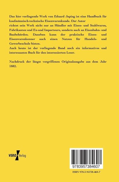 Das hier vorliegende Werk von Eduard Japing ist eine Handbuch für kaufmännisch-technische Eisenwarenkunde. Der Autor