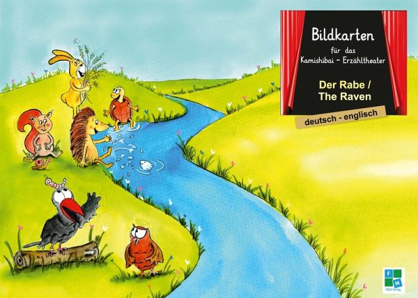 Zweisprachige Bildkarten der Bilderbuchgeschichte "Der Rabe" für das Kamishibai-Theater in deutsch/englisch - 13 Bildkarten im DINA3 - Format (29,7 x 42,0 cm), auf festem 300g-Bilderdruck - farbig illustriert - passend für das Kamishibai-Theater - in praktischer DINA3-Tasche zur Aufbewahrung - ideal zur Sprachförderung - kompletter Text auf separater Seite zum Vorlesen in deutsch und ungarisch - ideale Ergänzung zum Kniebuch Die Bildkarten eignen sich mit ihrem spielerischen Ansatz und der Verbindung vom Zuhören und Sehen perfekt für die Sprachförderung in der Kita oder zum Zweitspracherwerb.. Die Bildkarten werden in das Kamishibai gesteckt und beim Vorlesen des Textes ausgewechselt. Danach können sie auch im Gruppenzimmer aufgehängt werden, um weitere Aktionen zu gestalten. Thema Streit: Eines Sommertages setzte sich ein Rabe auf einen Baum, in einem ruhigen und friedlichen Wald, und begann ständig zu krähen, so dass er alle Waldbewohner in ihrer Ruhe gestört wurden. Wie konnten sie dem Raben vermitteln, dass das Gekrächze sie störte? Doch die schlaue Eule Ebru wusste einen Rat... NEU - Jetzt auch als KNIEBUCH erhältlich! Alle Kamishibais und Kniebücher sind in 27 verschiedenen Sprachen erhältlich: