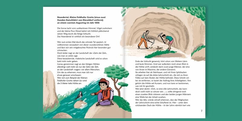 In Band 7 der DUSTY DIGGERS-Reihe dreht sich alles um die Neandertaler, die vor rund 400.000 bis etwa 40.000 Jahren Europa und Teile Asiens besiedelten. Viele Jahrtausende lebten sie zeitgleich neben dem modernen Menschen. Aber wie lebten sie? Konnten sie sprechen? Und wie viel von ihnen tragen wir heute noch in uns? Diese Rätsel versuchen Forscher:innen zum Teil noch heute zu lösen. Dazu werden auch die ersten Fundstücke aus dem Neandertal immer wieder untersucht. Dank ihnen wissen wir etwa, wie eng wir mit den Neandertalern verwandt sind. Denn die Entschlüsselung des Neandertaler-Erbguts gelang dem Paläogenetiker Svante Pääbo der 2022 dafür einen Nobelpreis erhielt mit einer Knochenprobe aus dem Oberarm jenes ersten Fundes! Sicher ist: Die Neandertaler waren alles andere als primitive Grobiane. Funde aus aller Welt beweisen, dass sie Waldelefanten mit raffinierten Methoden jagten, Werkzeug und Klebstoff herstellten, ihre Toten bestatteten und wahrscheinlich sogar Kunst machten. Welche Geheimnisse warten wohl noch darauf, enträtselt zu werden?