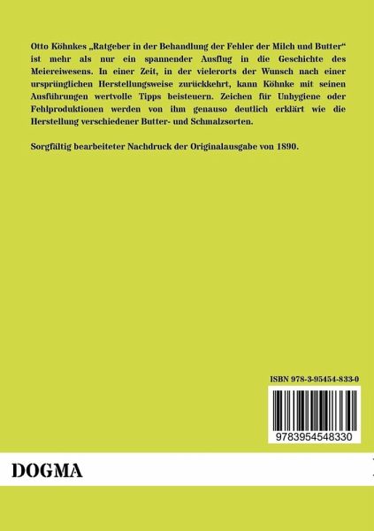 Otto Köhnkes Ratgeber in der Behandlung der Fehler der Milch und Butter ist mehr als nur ein spannender Ausflug in die Geschichte des Meiereiwesens. In einer Zeit, in der vielerorts der Wunsch nach einer ursprünglichen Herstellungsweise zurückkehrt, kann Köhnke mit seinen Ausführungen wertvolle Tipps beisteuern. Zeichen für Unhygiene oder Fehlproduktionen werden von ihm genauso deutlich erklärt wie die Herstellung verschiedener Butter- und Schmalzsorten.
