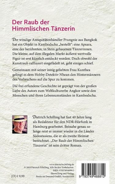 Der windige Antiquitätenhändler Prungnie aus Bangkok hat ein Objekt in Kambodscha "bestellt": eine Apsara, eine der berühmten, in Stein gehauenen Tänzerinnen. Die kleine, auf dem illegalen Markt äußerst wertvolle Figur ist erst kürzlich entdeckt worden. Doch obwohl der Kunstraub raffiniert eingefädelt ist, geht einiges schief.Gemeinsam mit seiner innig geliebten Frau Kunthea gelingt es dem Hobby-Detektiv Nhean den Hintermännern des Verbrechens auf die Spur zu kommen. Die frei erfundene Geschichte ist geprägt von der großen Liebe des Autors zum Weltkulturerbe Angkor sowie den Menschen und ihren Lebensumständen in Kambodscha.