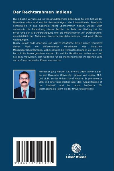 Die indische Verfassung ist von grundlegender Bedeutung für den Schutz der Menschenrechte und enthält Bestimmungen, die internationale Standards schrittweise in das nationale Recht übernommen haben. Dieses Buch untersucht die Entwicklung dieser Rechte, die Rolle der Bildung bei der Förderung der Gleichberechtigung und die Mechanismen zur Durchsetzung, einschließlich der Nationalen Menschenrechtskommission und gerichtlicher Auslegungen.Durch umfassende Analysen und wissenschaftliche Diskussionen vermittelt dieses Werk ein differenziertes Verständnis des indischen Menschenrechtsrahmens, wobei sowohl die Herausforderungen als auch die Fortschritte hervorgehoben werden. Es soll Ihr Verständnis verbessern und Sie dazu motivieren, sich weiterhin für die Menschenrechte im eigenen Land und auf internationaler Ebene einzusetzen.
