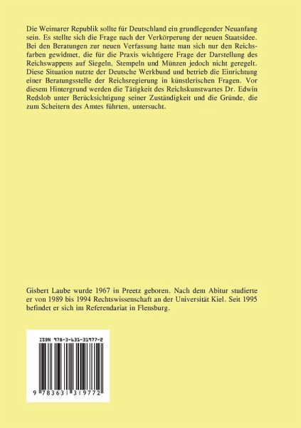 Die Weimarer Republik sollte für Deutschland ein grundlegender Neuanfang sein. Es stellte sich die Frage nach der Verkörperung der neuen Staatsidee. Bei den Beratungen zur neuen Verfassung hatte man sich nur den Reichsfarben gewidmet, die für die Praxis wichtigere Frage der Darstellung des Reichswappens auf Siegeln, Stempeln und Münzen jedoch nicht geregelt. Diese Situation nutzte der Deutsche Werkbund und betrieb die Einrichtung einer Beratungsstelle der Reichsregierung in künstlerischen Fragen. Vor diesem Hintergrund werden die Tätigkeit des Reichskunstwartes Dr. Edwin Redslob unter Berücksichtigung seiner Zuständigkeit und die Gründe, die zum Scheitern des Amtes führten, untersucht.
