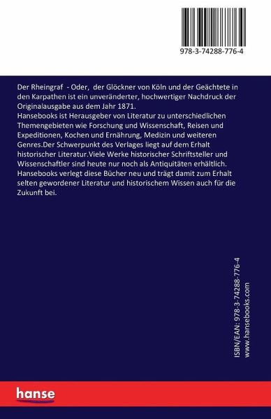 Der Rheingraf - Oder, der Glöckner von Köln und der Geächtete in den Karpathen ist ein unveränderter, hochwertiger Nachdruck der Originalausgabe aus dem Jahr 1871.