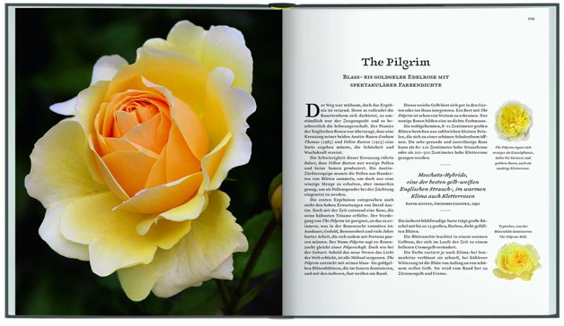 Die vorgestellten Duft- und Prachtrosen werden in mehr als 500 eindrucksvollen Fotografien abgebildet und ausführlich beschrieben. So erläutert zum Beispiel das Rosen-ABC den Aufbau der Blüte, deren Farben und Formen. Blumenliebhaber können in den Kapiteln über die Kulturgeschichte der Rosen ihr Wissen auffrischen und erweitern.