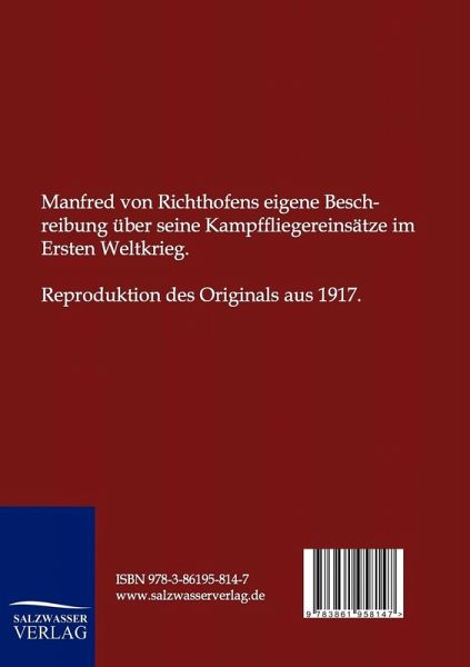 Manfred von Richthofens eigene Beschreibung über seine Kampffliegereinsätze im Ersten Weltkrieg. Reproduktion des Originals aus 1917.