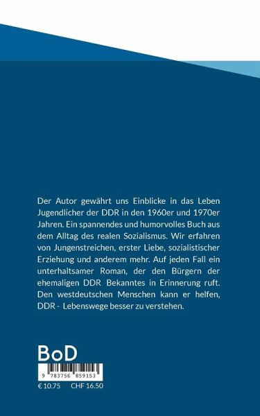 Der Autor gewährt uns Einblicke in das Leben Jugendlicher der DDR in den 1960er und 1970er Jahren. Ein spannendes und humorvolles Buch aus dem Alltag des realen Sozialismus. Wir erfahren von Jungenstreichen, erster Liebe, sozialistischer Erziehung und anderem mehr. Auf jeden Fall ein unterhaltsamer Roman, der den Bürgern der ehemaligen DDR Bekanntes in Erinnerung ruft. Den westdeutschen Menschen kann er helfen, DDR - Lebenswege besser zu verstehen.