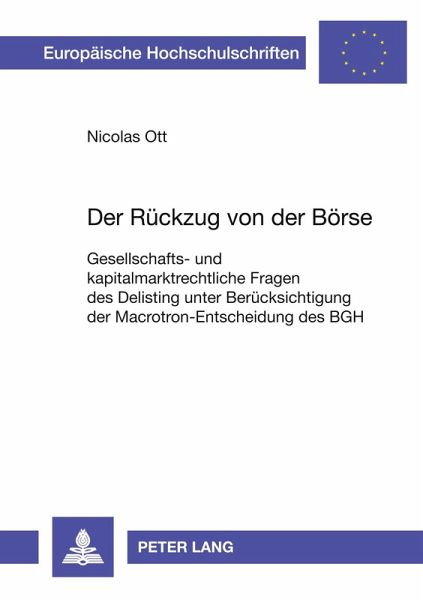 Der Rückzug von der Börse darf gegenwärtig zu den meistdiskutierten Themen des deutschen Gesellschafts- und Kapitalmarktrechts gezählt werden. Ziel dieser Darstellung ist eine umfassende wissenschaftliche Aufarbeitung der rechtlichen Fragestellungen des Börsenrückzugs. Im ersten Teil der Arbeit werden Motive und Handlungsoptionen der Delisting-Initiatoren beleuchtet und strategische Alternativen zur Umsetzung von Going Private-Transaktionen vorgestellt. Der zweite Teil der Arbeit ist der Aufarbeitung der gesellschafts- und kapitalmarktrechtlichen Fragestellungen des Börsenrückzugs gewidmet. Zunächst werden die Rechtsfragen des regulären Delisting nach § 38 Abs. 4 BörsG behandelt, im Anschluss daran werden die Problemkreise des kalten Delisting nach aktien- und umwandlungsrechtlichen Vorschriften vertieft. Gegenstand des letzten Teils der Arbeit ist der zwangsweise Ausschluss von der Börse.
