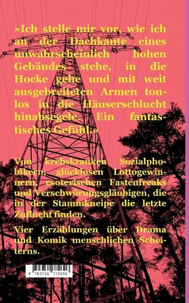 Ein sozialphobischer Hypochonder erhält die tödliche Krebsdiagnose, auf die er sein Leben lang gewartet hat. Er bezieht eine abgelegene Hütte in den amerikanischen Wäldern, um endlich der Quelle seiner täglichen Panikat-tacken zu entkommen: anderen Menschen.Ausgerechnet an jenem verlassenen Ort, der als Zufluchtsstätte gedacht war, wird er in die denkbar unmittelbarste Form menschlicher Interaktion hineingedrängt: den Kampf ums Überleben.Ein Journalist, dessen Karriere seit einer Weile in einer Sackgasse steckt, erhält den Auftrag, einen esoterischen Eremiten zu interviewen, der behauptet, er ernähre sich nur von Licht. Um den Interviewten der Scharlatanerie zu überführen, geht er ein großes Risiko ein.In vier Geschichten erzählt Kosig auf tragikomische Weise vom Scheitern, - dem selbstverschuldeten Untergang wie dem kosmischen Unrecht gleichermaßen.