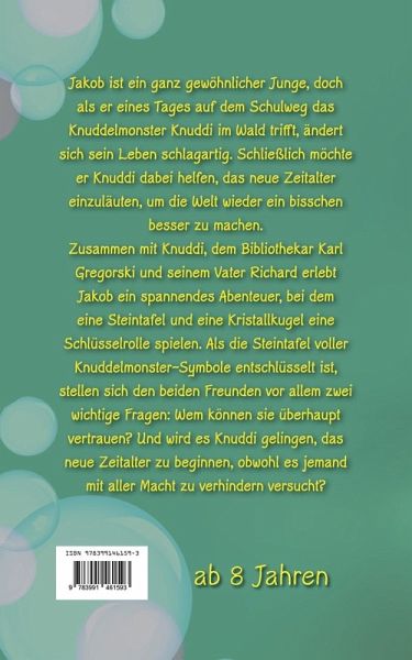 Jakob ist ein ganz gewöhnlicher Junge, doch als er eines Tages auf dem Schulweg das Knuddelmonster Knuddi im Wald trifft, ändert sich sein Leben schlagartig. Schließlich möchte er Knuddi dabei helfen, das neue Zeitalter einzuläuten, um die Welt wieder ein bisschen besser zu machen. Zusammen mit Knuddi, dem Bibliothekar Karl Gregorski und seinem Vater Richard erlebt Jakob ein spannendes Abenteuer, bei dem eine Steintafel und eine Kristallkugel eine Schlüsselrolle spielen. Als die Steintafel voller Knuddelmonster-Symbole entschlüsselt ist, stellen sich den beiden Freunden vor allem zwei wichtige Fragen: Wem können sie überhaupt vertrauen? Und wird es Knuddi gelingen, das neue Zeitalter zu beginnen, obwohl es jemand mit aller Macht zu verhindern versucht?