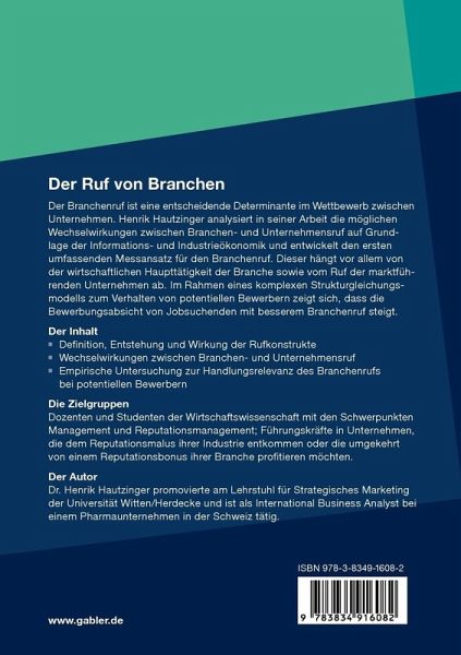 Der Branchenruf ist eine entscheidende Determinante im Wettbewerb zwischen Unternehmen. Henrik Hautzinger analysiert in seiner Arbeit die möglichen Wechselwirkungen zwischen Branchen- und Unternehmensruf auf Grundlage der Informations- und Industrieökonomik und entwickelt den ersten umfassenden Messansatz für den Branchenruf. Dieser hängt vor allem von der wirtschaftlichen Haupttätigkeit der Branche sowie vom Ruf der marktführenden Unternehmen ab. Im Rahmen eines komplexen Strukturgleichungsmodells zum Verhalten von potentiellen Bewerbern zeigt sich, dass die Bewerbungsabsicht von Jobsuchenden mit besserem Branchenruf steigt.