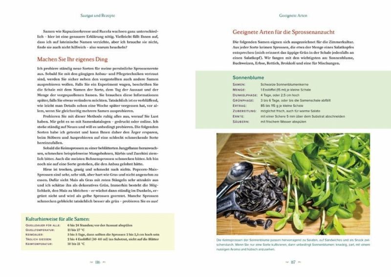 Kein eigener Garten oder Balkon, nicht viel Zeit für Gartenarbeit oder Sehnsucht nach einer grünen Oase auch im Winter? Auf Gartenfeeling, frisches Grün und gesundes, selbst angebautes Gemüse musst du nie wieder verzichten. Starte gleich mit einem eigenen Salatgarten in der Wohnung oder im Haus und in weniger als 10 Tagen kannst du die erste Ernte genießen! SUPERFOOD IN DER WOHNUNG SELBER ANBAUENDer Gartenexperte Peter Burke erklärt Schritt für Schritt, worauf du bei Aussaat, Pflege und Verarbeitung der Sprossen achten musst, damit du daraus köstlichen Salat ziehen kannst. Alle Keimlingspflänzchen, z.B. aus Brokkoli-, Sonnenblumen- oder Rettichsamen, wachsen auf frischer Erde und sind somit nicht nur biologisch, sondern auch besonders geschmacksintensiv und ein wahres Superfood. Direkt aus dem Anbaukistchen geerntet, weisen diese Salate nämlich einen enorm hohen Vitamin- und Nährstoffgehalt auf. WENIG ZEIT, ERTRAGREICHE ERNTE: GRÜNE VIELFALFT FÜR GANZJAHRESGÄRTNER_INNEN UND URBANGARDENERSDie Samen selbst sind äußerst kostengünstig und schon ein Esslöffel liefert eine beachtliche Ernte an frischem Grün - selbst auf kleinstem Raum. Mit minimalem Zeit- und Platzaufwand kannst du so täglich eine volle Schüssel Salat ernten! Wie sich diese grüne Vielfalt am besten auf den Tisch bringen lässt, verrät Peter Burke in einem eigenen Rezeptteil.- von der Aussaat zum Salat in 7 Tagen - jeden Tag eine volle Salatschüssel ernten- minimaler Zeitaufwand: die Sprossen sind herrlich unkompliziert- gesundes Superfood: überdurchschnittlich hoher Mineralstoff- und Vitamingehalt- gleich heute starten: keine aufwändige Ausstattung notwendig - kostengünstige Samen liefern wertvollen Salat- unvergleichlich voller Geschmack: frischer und besser als von der Fensterbank geht's nichtDer Salatgarten in den eigenen 4 Wänden für leidenschaftliche Ganzjahresgärtner_innen, Urban Gardeners und alle, die Sprossen auch kommerziell ziehen wollen - herrlich einfach, besonders kostengünstig und wunderbar ertragreich!"Dieses Buch präsentiert eine neue Art, Salat zu ziehen ... Schritt für Schritt, einfach eschrieben und mit hilfreichen Fotos zeigt Peter Burke, wie man eine große Vielfalt an frischem Grün anpflanzen kann."Edward C. Smith, Autor von "The Vegetable Gardener's Bible""Das Buch 'Der Salatgarten für zuhause' ist der Beweis dafür, dass Sie nicht viel Platz, Zeit oder Ressourcen brauchen, um nährstoffreiche Lebensmittel für sich selbst und Ihre ganze Familie zu produzieren. Peter Burke hat eine umfassende und dennoch einfache Anleitung geschrieben, mit der Sie im Haus selber Salate ziehen können. Seine Methode definiert das Wort Garten neu."Ben Hewitt, Autor von "The Nourishing Homestead"