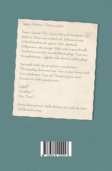 Tippen. Rechnen. Mörder suchen.Bonn, Advent 1926. Emma hat sich entschieden: Sie bleibt in Bonn und verdient als Sekretärin eines Schönheitssalons ihr eigenes Geld. Spöttische Kolleginnen, eine strenge Chefin und anspruchsvolle Kundinnen sind für die schüchterne junge Frau eine Herausforderung. Aufgeben aber kommt nicht infrage.Erst recht nicht, als sie auf dem verschneiten Münsterplatz kniet und eine Frau in den Armen hält. Einer sterbenden Frau, die Minuten zuvor noch Kundin im Salon gewesen war.Unfall?Krankheit?Oder Mord?Emma hört sich um, nicht ahnend, wie nahe ihr dieser Fall kommen wird ...Der Salon des Todes ist der spannende zweite Band der historischen Krimiserie rund um Fräulein Schumacher und ihre Fälle.