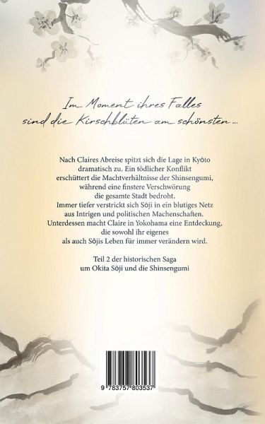 "Im Moment ihres Falls sind die Kirschblüten am schönsten ..."Nach Claires Abreise spitzt sich die Lage in Kyoto dramatisch zu. Ein tödlicher Konflikt erschüttert die Machtverhältnisse der Shinsengumi, während eine finstere Verschwörung die gesamte Stadt bedroht. Immer tiefer verstrickt sich Soji in ein blutiges Netz aus Intrigen und politischen Machenschaften.Unterdessen macht Claire in Yokohama eine Entdeckung, die sowohl ihr eigenes als auch Sojis Leben für immer verändern wird.Das Finale der historischen Saga um Okita Soji und die ShinsengumiGenre: Historisch, Drama, Romantik