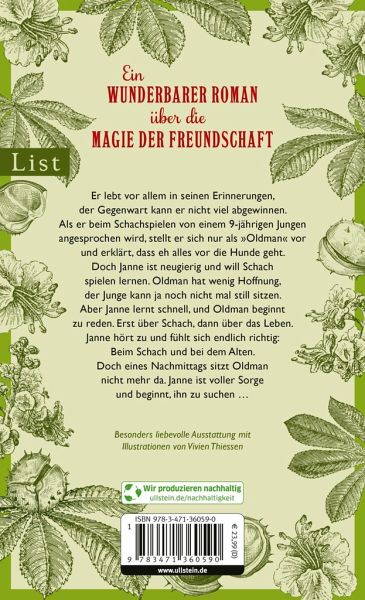 Er lebt vor allem in seinen Erinnerungen, der Gegenwart kann er nicht viel abgewinnen. Als er beim Schachspielen unter seiner Kastanie von einem 9-jährigen Jungen angesprochen wird, stellt er sich nur als "Oldman" vor und erklärt dem Kleinen, dass eh alles vor die Hunde geht. Doch Janne ist neugierig und will Schach spielen lernen. Oldman hat wenig Hoffnung, dass der Junge das lernen wird, er kann ja noch nicht mal still sitzen. Aber Janne lernt schnell, und Oldman beginnt zu reden. Erst über Schach, dann über das Leben. Und Janne hört zu und fühlt sich endlich richtig: Beim Schach und bei dem Alten. Doch eines Nachmittags sitzt Oldman nicht mehr da. Auch am nächsten und übernächsten Tag gibt es keine Spur von ihm. Janne ist voller Sorge und beginnt, ihn zu suchen ...