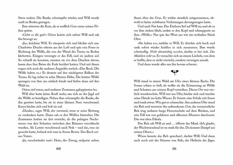 Dass die Zwillinge in diesem Buch jeder auf seine Weise ihre Aufgaben bewältigen müssen und dabei Unterstützung durch die unterschiedlichsten Fabelwesen erhalten, hat mir sehr gefallen.