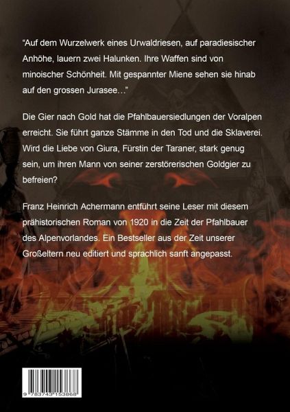 "Auf dem Wurzelwerk eines Urwaldriesen, auf paradiesischer Anhöhe, lauern zwei Halunken. Ihre Waffen sind von minoischer Schönheit. Mit gespannter Miene sehen sie hinab auf den großen Jurasee ..."Die Gier nach Gold hat die Pfahlbauersiedlungen der Voralpen erreicht. Sie führt ganze Stämme in den Tod und die Sklaverei. Wird die Liebe von Giura, Fürstin der Taraner, stark genug sein, um ihren Mann von seiner zerstörerischen Goldgier zu befreien?Franz Heinrich Achermann entführt seine Leser mit diesem prähistorischen Roman von 1920 in die Zeit der Pfahlbauer des Alpenvorlandes. Ein Bestseller aus der Zeit unserer Großeltern neu editiert und sprachlich sanft angepasst.