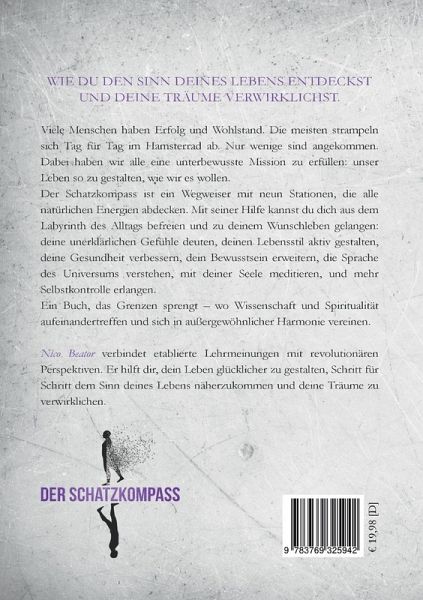 Wie du den Sinn des Lebens findest, deine Träume realisierst und persönliche Ziele erreichst: Der Leitfaden für dein Wunschleben. Dein Weg zum Lebensglück: sinnliche und übersinnliche Wahrnehmung verbinden. Du lebst ein Leben, in dem es dir äußerlich betrachtet an nichts Essentiellem fehlt? Du bist erfolgreich, hast Freundeskreis und Familie um dich - und trotzdem fühlst du dich suchend, getrieben? So wie dir geht es vielen Menschen, deren Lebensstil nicht zu den eigenen Maßstäben von Glück und Erfolg passt. Nico Beator hat einen Weg gefunden, wie du das hinter dir lassen kannst: indem du dein geistiges und praktisches Handeln veränderst! Mit seinem Handbuch lernst du, den Spuren deiner Gefühle, deines Willens und deiner Gedanken zu folgen, so dass du das wahre Ziel deines Lebens erreichst. - Der Weg zu deinem Wunschleben: Lerne, dich mit deinem Unterbewusstsein zu verbinden - Nutze die Balance von Körper, Geist und Seele als Schlüssel zum Glück - Bekomme, was du dir vorstellst durch persönliche Veränderung auf Schwingungsebene - Wissenschaft trifft Spiritualität: Mit Energie den universellen Hyperraum und die physische Erde verbinden - Höre auf die Impulse deiner Gedanken und Gefühle und setze sie in Taten um! Glücklich werden: 9 Stationen auf dem Weg zur Selbstbestimmung. Karriere aufbauen, Familie gründen, Haus kaufen und aufs Rentenalter warten: Das kann doch nicht alles im Leben sein! Davon ist auch Nico Beator überzeugt. In seinem Ratgeber verbindet er Erfahrung und Recherche zu einem Wegweiser, mit dem du deine Träume verwirklichen kannst - so individuell wie du selbst. Durch Meditationen und bewusste Entscheidung, deinen instinktiven Gedanken und Gefühlen zu vertrauen, eröffnest du dir ganz neue Möglichkeiten. Lerne, dein Bewusstsein zu erweitern und dein Potential zum Glücklichsein auszuschöpfen - mit diesem Schatzkompass als Coach und Trainer! AKTUALISIERTE UND ERWEITERTE EDITION 12/24: + Einleitungstext zu jedem Kapitel + Verlagerung des gesamten Bonuskapitels in den Anhang + Visualisierungsbilder der Meditationsübungen + Textauszüge aus dem Talmud Jmmanuel + Präzisere Textausrichtung am "roten Faden" + Ergänzung neuer Erkentnisse + Umfangreiches Literaturverzeichnis