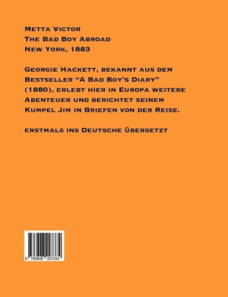 "The Bad Boy Abroad", erschienen 1883, ist ein Folgeband des amerikanischen Top-Sellers "A Bad Boy's Diary", eines der Ur-Klassiker der Lausbubenliteratur. Der Held Georgie Hackett ist etwas älter geworden und macht mit seinen alten Eltern eine Reise nach Europa, über die er seinem Kumpel Jim in 34 Briefen Bericht erstattet.