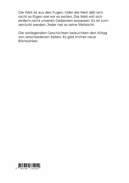 Die Welt ist aus den Fugen. Oder die Welt läßt sich nicht so fügen wie wir es wollen. Die Welt will sich einfach nicht unseren Gedanken anpassen. Es ist zum verrückt werden. Jeder hat so seine Weltsicht. Die vorliegenden Geschichten beleuchten den Alltag von verschiedenen Seiten. Es gibt immer neue Blickwinkel.