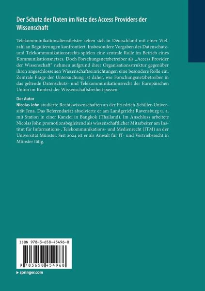 Telekommunikationsdienstleister sehen sich in Deutschland mit einer Vielzahl an Regulierungen konfrontiert. Insbesondere Vorgaben des Datenschutz- und Telekommunikationsrechts spielen eine zentrale Rolle im Betrieb eines Kommunikationsnetzes. Doch Forschungsnetzbetreiber als "Access Provider der Wissenschaft" nehmen aufgrund ihrer Organisationsstruktur gegenüber ihren angeschlossenen Wissenschaftseinrichtungen eine besondere Rolle ein. Zentrale Frage der Untersuchung ist daher, wie Forschungsnetzbetreiber in das geltende Datenschutz- und Telekommunikationsrecht der Europäischen Union im Kontext der Wissenschaftsfreiheit passen.