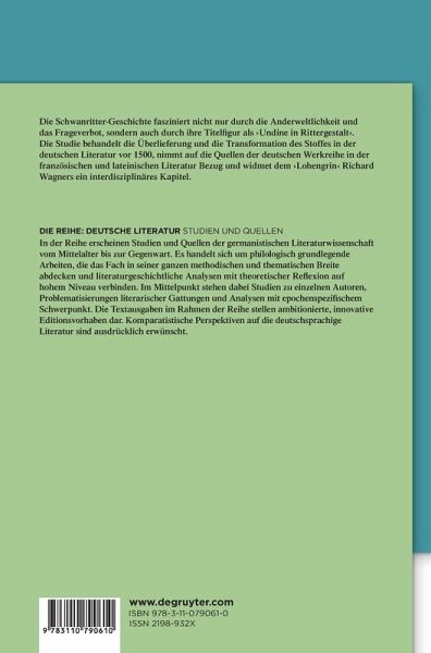 Die Sage um den Schwanritter gehört zu den weit verbreiteten mittelalterlichen Erzählstoffen, die bis heute nicht an Faszinationskraft verloren haben. Sie steht im Umfeld der Mahrtenehegeschichten und lässt sich als Gründungsmythos lesen, erhält ihr Signum durch die Kernmotive Gerichtskampf und Frageverbot. In der deutschen Literatur vor 1500 erfährt dieser Erzählstoff in den Werken Parzival, Der Schwanritter, Jüngerer Titurel, Lohengrin, Lorengel und Buch der Abenteuer Bearbeitung. Die vorliegende Arbeit ist die erste Monographie, die die gesamte deutsche vormoderne Werkreihe zum Schwanritter-Stoff zum Gegenstand hat und seine Transformation durch die Jahrhunderte verfolgt. Sie nimmt die stabile Grundstruktur und mannigfaltigen Variationsmöglichkeiten der Schwanritter-Erzählungen als Ausgangspunkt dafür, die Allianzen des Stoffes mit diversen literarischen Traditionen, poetischen Formen, historischen Diskursen sowie Zyklusbildungen aufzuzeigen. Als Quellen der deutschen Werkreihe werden die altfranzösischen Schwanritter- und Schwanenkinder-Geschichten behandelt. Das wichtigste Rezeptionszeugnis in der Moderne, Richard Wagners Lohengrin, wird als Ausblick sowohl quellengeschichtlich als auch musikalisch und intermedial untersucht.