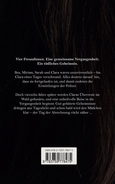 Vier Freundinnen. Eine gemeinsame Vergangenheit. Ein tödliches Geheimnis. Bea, Miriam, Sarah und Clara waren unzertrennlich - bis Clara eines Tages verschwand. Alles deutete darauf hin, dass sie fortgelaufen ist, und damit endeten die Ermittlungen der Polizei. Doch vierzehn Jahre später werden Claras Überreste im Wald gefunden, und eine unheilvolle Reise in die Vergangenheit beginnt. Gut gehütete Geheimnisse drängen ans Tageslicht und schon bald wird den Mädchen klar - der Tag der Abrechnung rückt näher ...