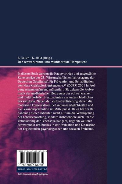 In diesem Buch werden die Hauptvorträge und ausgewählte Kurzvorträge der 28. Wissenschaftlichen Jahrestagung der Deutschen Gesellschaft für Prävention und Rehabilitation von Herz-Kreislauferkrankungen e.V. (DGPR) 2001 in Freiburg zusammenfassend präsentiert. Sie zeigen die Problematik der medizinischen Betreuung des schwerkranken und multimorbiden Herzpatienten aus unterschiedlichen Blickwinkeln. Neben der Risikostratifizierung stehen die modernen konservativen Behandlungsmöglichkeiten und die Sekundärprävention im Mittelpunkt. Da es bei der Behandlung dieser Patienten nicht nur um die Verbesserung der Lebenserwartung, sondern insbesondere auch um die Verbesserung der Lebensqualität geht, liegt ein weiterer Schwerpunkt des Buches in der Evaluation und Diskussion der begleitenden psychologischen und sozialen Probleme.