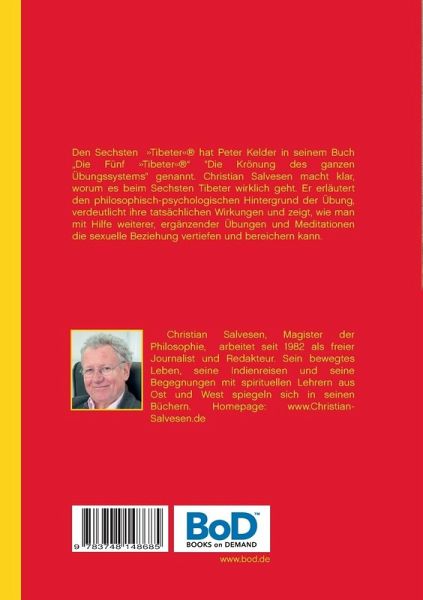 Den Sechsten Tibeter hat Peter Kelder in seinem Buch 'Die Fünf Tibeter' "Die Krönung des ganzen Übungssystems" genannt. Christian Salvesen macht in diesem Buch klar, worum es beim Sechsten Tibeter wirklich geht: Er erläutert den philosophisch-psychologischen Hintergrund der Übung, verdeutlicht ihre tatsächlichen Wirkungen und zeigt, wie man mit Hilfe weiterer, ergänzender Übungen und Meditationen ein intensiveres Körpergefühl entwickeln, die individuelle Liebesfähigkeit stärken und eine sexuelle Beziehung vertiefen und bereichern kann.