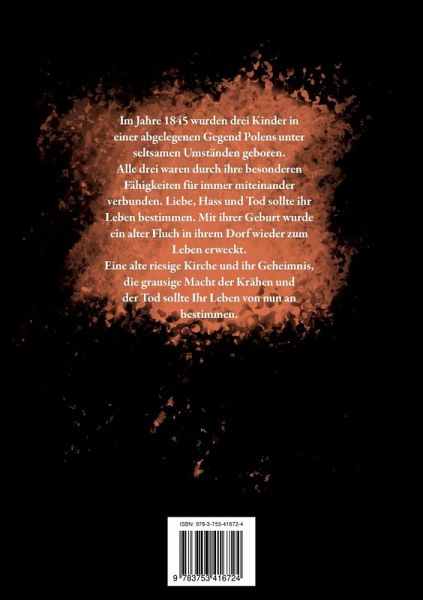 Im Jahre 1845 wurden drei Kinder in einer abgelegenen Gegend Polens unter seltsamen Umständen geboren.Alle drei waren durch ihre besonderen Fähigkeiten für immer miteinander verbunden. Liebe, Hass und Tod sollte ihr Leben bestimmen. Mit ihrer Geburt wurde ein alter Fluch in ihrem Dorf wieder zum Leben erweckt.Eine alte riesige Kirche und ihr Geheimnis, die grausige Macht der Krähen und der Tod sollte Ihr Leben von nun an bestimmen.