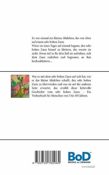 Es war einmal ein kleines Mädchen, das war oben auf einem sehr hohen Zaun. Wieso sie eines Tages auf einmal begann, den sehr hohen Zaun hinauf zu klettern, das wusste sie nicht.Etwas tief in ihr drin ließ sie aufstehen, sich dem Zaun zudrehen und beginnen, an ihm hochzuklettern....Was es mit dem sehr hohen Zaun auf sich hat, wie es dem kleinen Mädchen gelingt, den sehr hohen Zaun zu überwinden und was sie auf der anderen Seite erwartet, das erzählt dieses liebevolle Buch vom sehr hohen Zaun.Ein Vorlesebuch für Menschen von 10 bis 105 Jahren.