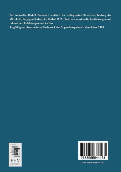 Der Journalist Rudolf Dammert schildert im vorliegenden Band den Feldzug der Mittelmächte gegen Serbien im Herbst 1915. Illustriert werden die Ausführungen mit zahlreichen Abbildungen und Karten.