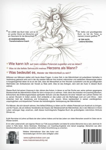"Ich LIEBE das Buch total, und es ist ein großer Dienst am Menschen und ein Geschenk für die Menschheit!" - M VANDENEIJNDE, Transformations-Coach."Ein tiefes und grundlegendes Buch; es hat die Türen zu meinem Inneren geöffnet"! - M TEN KATE, Lebens-Künstler.- Wie kann ich auf mein vollstes Potenzial zugreifen und es leben?- Was ist die tiefste Sehnsucht meines Herzens als Mann?- Was bedeutet es, Meister der Männlichkeit zu sein?Millionen von Männern stellen sich heute diese Fragen. Der Mann aus der post-feministischen Welt ist entweder ein braver, kraftloser Schatten seines wahren Selbst, der sich selbst mit technischen Spielereien umgibt und keinen Sinn im Leben mehr verfolgt, oder er ist ein körperlich voll erwachsener Jugendlicher, der schnell zornig wird und denkt, er stünde über allem anderen. Gibt es einen dritten, wahrhaftigeren, erhabeneren Typ Mann?In einer Zeit, in der Männlichkeit mit pubertärem Verhalten in Verbindung gebracht wird und in der die meisten Männer ihre inneren männlichen und weiblichen Wesenszüge selten in Ausgewogenheit leben ist es an der Zeit, dass die Menschheit an ihre Wurzeln zurückkehrt und die grundlegenden Wahrheiten der Zivilisationen der Vorzeit zu Rate zieht. Dies ist das Anliegen, dem sich der Autor in diesem Buch widmet.Dieses Buch hat seinen Ursprung in den Jahren des Autors, in denen er auf der Suche war, seine verloren gegangene Meisterschaft der Männlichkeit wieder für sich in Anspruch zu nehmen. Viele Jahre des Arbeiten mit Coaching-Beratern, Erforschens des Erfahrungsschatzes spiritueller Schulen und des Studiums mit einer Vielzahl von Lehrern führten ihn zu seinen Wurzeln in Indien zurück. Dort entdeckte er das Leben und die Mythologie rund um Lord Shiva - dem indischen Gott der Zerstörung und Erneuerung - von neuem. Shiva repräsentiert in seinen uranfänglichen, ursprünglichen und körperlichen Formen die höchstmögliche Verkörperung der Männlichkeit.Für Männer, die sich danach sehnen, ihre tiefste Erfüllung zuleben und ihr vollstes Potenzial zum Ausdruck zu bringen, und für Frauen, die ein tieferes Verständnis der Essenz der Meisterschaft der Männlichkeit, die in den Männern in ihrem Leben verborgen liegt, ersehnen, stellt dieses hochintegrierte Ratgeber-Buch die großartigsten männlichen Attribute Shivas vor.