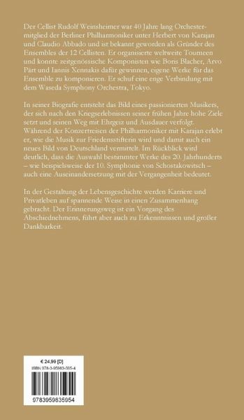 Der Cellist Rudolf Weinsheimer war 40 Jahre lang Orchestermitglied der Berliner Philharmoniker unter Herbert von Karajan und Claudio Abbado und ist bekannt geworden als Gründer des Ensembles der 12 Cellisten. Er organisierte weltweite Tourneen und konnte zeitgenössische Komponisten wie Boris Blacher, Arvo Pärt und Iannis Xennakis dafür gewinnen, eigene Werke für das Ensemble zu komponieren. Er schuf eine enge Verbindung mit dem Waseda Symphony Orchestra, Tokyo.