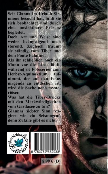 Seit Gianna im Urlaub Sirmione besucht hat, fühlt sie sich beobachtet und durch eine unsichtbare Präsenz begleitet.Doch Art und Weise sind weder beängstigend noch störend. Zugleich träumt sie ständig vom Tiber und dem Ponte Palatino.Als ihr schließlich noch ein Mann vor die Linse läuft, während sie Fotoserien zum Herbst-Äquinoktium aufnimmt, der auf den Fotos nirgends zu entdecken ist, wird die Sache noch mysteriöser.Was hat die Tiber-Brücke mit den Merkwürdigkeiten vom Gardasee zu tun?Giannas siebter Sinn reagiert wie ein Seismograf, denn Zufälle gibt es nicht.