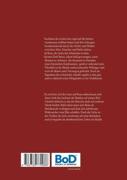 Nachdem die Grafen ihre Jagd auf die letzten Asentreuen eröffnet haben und ihre Schergen brandschatzend durch die Dörfer und Wälder zwischen Aller, Emscher und Ruhr ziehen, ist Bran, der Sohn des Schmiedes in dem kleinen Dorf Buira, schon bald gezwungen, seine Heimat zu verlassen. Als Seemann in Diensten eines friesischen Kaufmannes gerät er während eines Überfalls in die Hände umherziehender Wikinger und wird als Sklave in das vom dänischen König Harald besetzte Norwegen gebracht. Nun Eigentum des Schmiedes Askold, ergeht es ihm dort jedoch gut, und er entdeckt seine Fähigkeiten in der Kunst des Dichtens. Da wird der Jarl des Gaus auf Bran, der nun den Namen Rune trägt, aufmerksam. Dieser holt den Sachsen als Skalden auf seinen Hof, und er erkennt schnell, dass der junge Bursche noch ein größeres Talent besitzt, als das des Dichtens. Bald schon muss sich Rune als Mörder verdingen und dem Jarl unliebsame Widersacher vom Halse schaffen. Doch die Liebe zu der Tochter des Jarls und sein Drang danach, ein freier Mann zu werden, zerstreuen schnell all seine Bedenken. Und so beginnt für den jungen Sachsen ein abenteuerliches Leben als Skalde in den Ländern von Thule.
