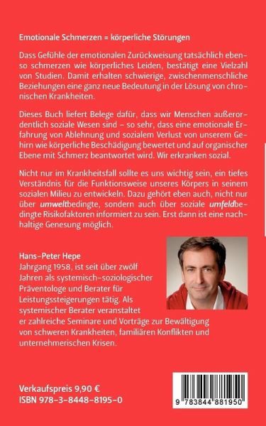 Emotionale Schmerzen = körperliche StörungenDass Gefühle der emotionalen Zurückweisung tatsächlich ebenso schmerzen wie körperliches Leiden, bestätigt eine Vielzahl von Studien. Damit erhalten schwierige, zwischenmenschliche Beziehungen eine ganz neue Bedeutung in der Lösung von chronischen Krankheiten. Dieses Buch liefert Belege dafür, dass wir Menschen außerordentlich soziale Wesen sind - so sehr, dass eine emotionale Erfahrung von Ablehnung und sozialem Verlust von unserem Gehirn wie körperliche Beschädigung bewertet und auf organischer Ebene mit Schmerz beantwortet wird. Wir erkranken sozial.Nicht nur im Krankheitsfall sollte es uns wichtig sein, ein tiefes Verständnis für die Funktionsweise unseres Körpers in seinem sozialen Milieu zu entwickeln. Dazu gehört eben auch, nicht nur über umweltbedingte, sondern auch über soziale umfeldbedingte Risikofaktoren informiert zu sein. Erst dann ist eine nachhaltige Genesung möglich.