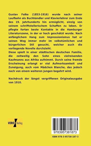 Diese spielt in einer städtischen deutschen Familie, die zeitweilig den Sohn eines vielreisenden Kaufmanns aus Afrika aufnimmt. Durch seine fremde Erscheinung erlangt er viel Aufmerksamkeit und Zuneigung, auch vom Mädchen Blanche, das jedoch noch von einem weiteren Jungen begehrt wird.